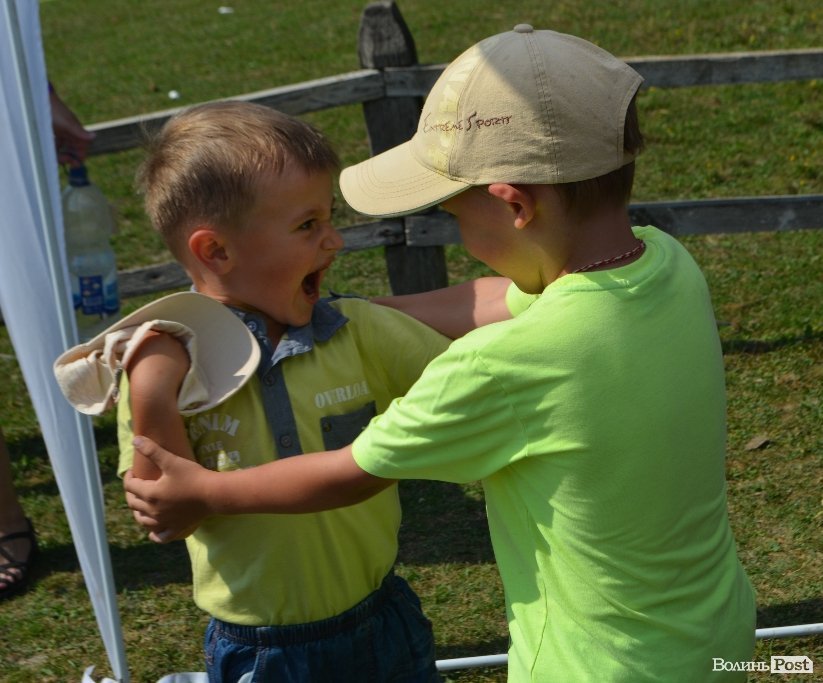 Мами малюків, разом із волонтерами, розважали дітей за допомогою ігор. І, не зважаючи на спеку, усі діти граються на терторії дитячого містечка.