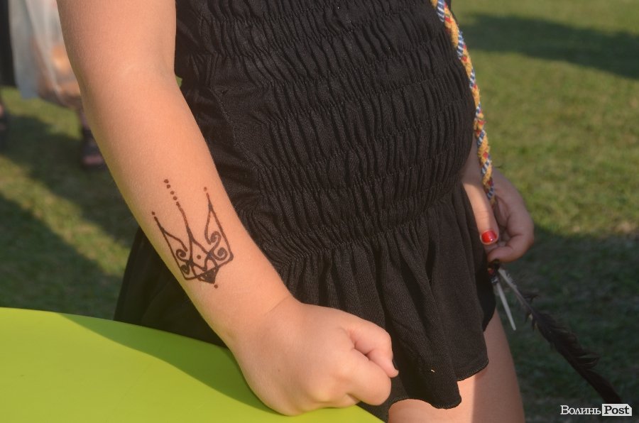 Катя – майстер з біо-тату розповідає, що в якості малюнка для тату діти найчастіше вибирають Тризуб. «Є і зайчики, і котики, і метелики, але дітки найчастіше вибирають Тризуб. Я впевнена, що батьки їм розповідають про національну символіку, адже багато маленьких дітей приходять і говорять: «О, тризуб».