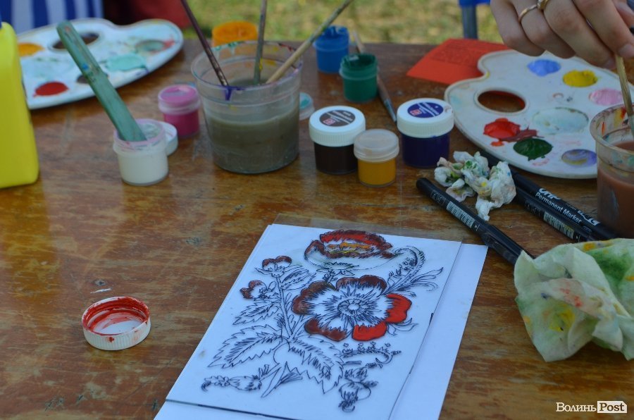 Професійні майстри, яких запросили організатори фестивалю, вчать дітей малювати, робити пано, ляльки-мотанки, цікаві фігурки із надувних кульок та ліпити глечики із глини.