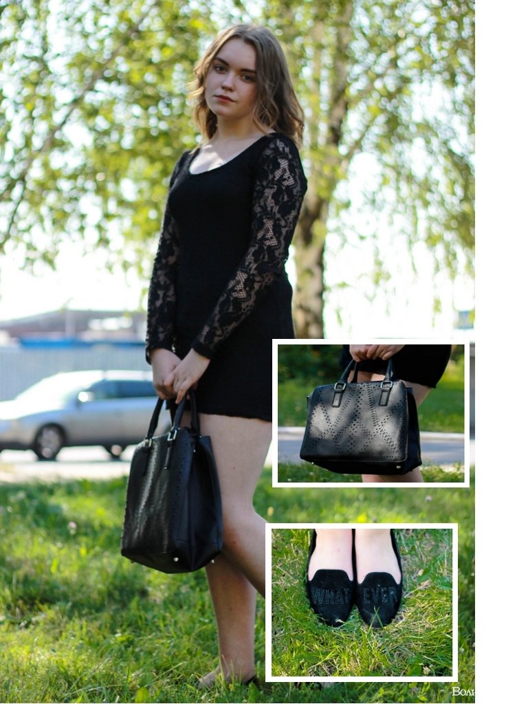 На фото Віка одягнена у сукню TERRANOVA, балетки SINSAY. Образ підкреслює масивна сумка від HOUSE.