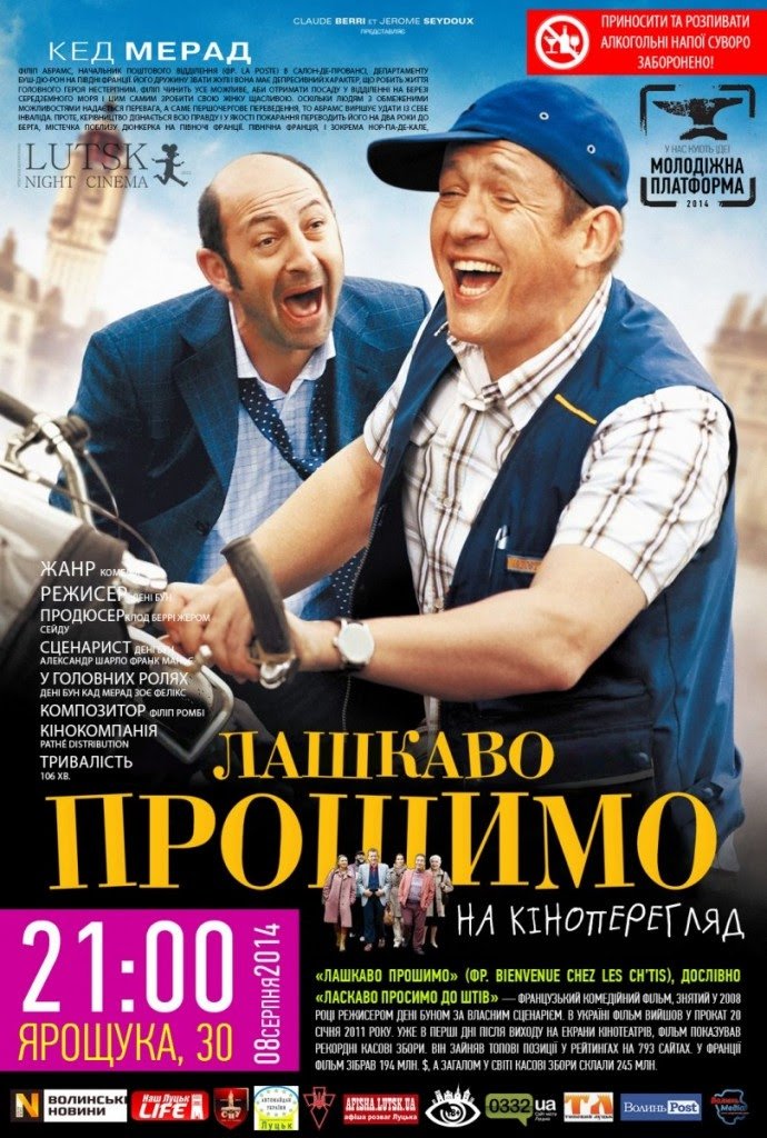 Французьку комедію «Лашкаво прошимо» приготували організатори кіноперегляду лучанам та гостям міста.