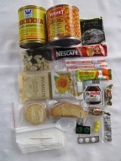 Склад першого сухпайка, розрахованого на 3-4 прийоми їжі: