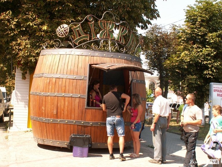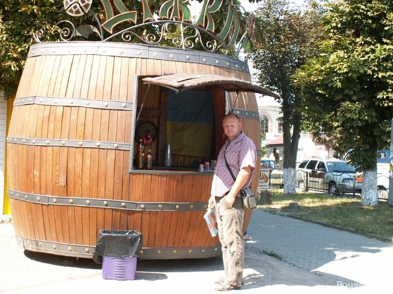 Від минулого року луцький підприємець Василь Попович намагається отримати дозвіл міської влади на встановлення кіоску, стилізованого під дерев'яну діжку.