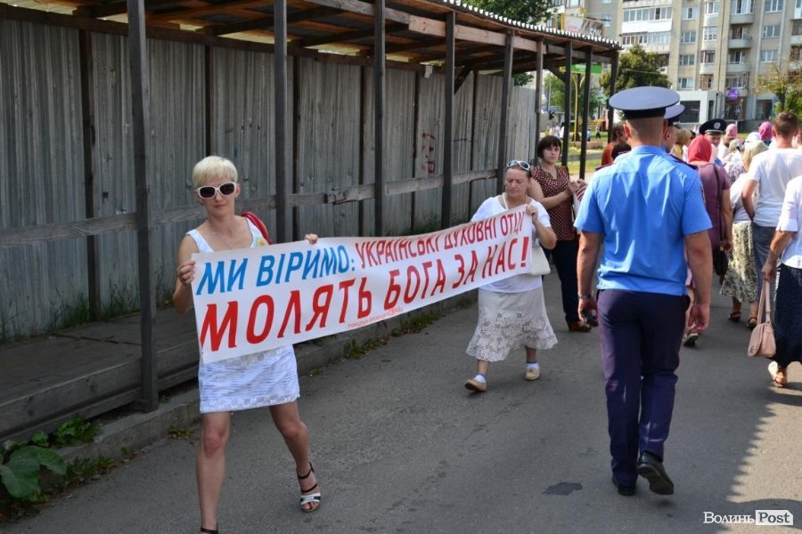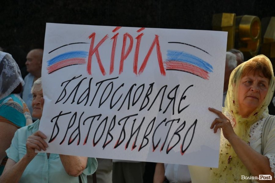 Коли промову виголошував секретар Волинської єпархії УПЦ МП Миколай Бондарук, активісти нагадали йому, що Московський патріархат, мовляв, недостатньо активно підтримує українську армію, а також про "гріхи" патріарх РПЦ Кіріла, якому підпорядковується УПЦ МП.