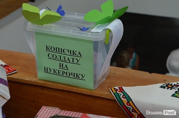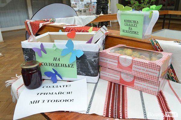 Після відкриття виставки на другому поверсі бібліотеки відбулася акція «Лист солдату: з Волині з любов’ю» зі збору грошей та продуктів для військових.