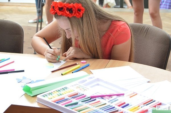 Крім того, охочі писали листи воякам на фронт. Усе це згодом передадуть в зону АТО.