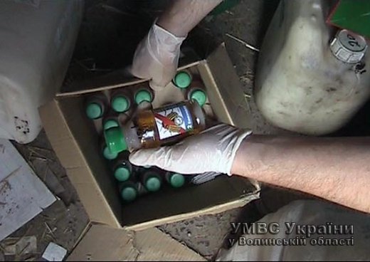 Правоохоронці вилучили заводську помпу, за допомогою якої спритники здійснювали розлив і фасування агрохімікатів, 10 тисяч етикеток відомих торгівельних марок, понад 15 тисяч нових пластмасових пляшок ємністю 100,150, 200 грам та 05, 1, 1,5 літра, а також більше як 20 тисяч одноразових корків до пляшок.