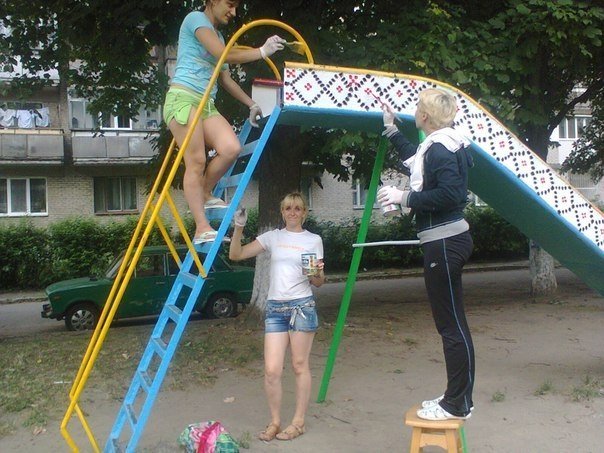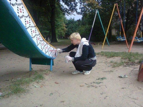 "Наш рідний двір своїми ручками все!!!!!Національно-патріотичний! Це Львівська-Стрітт!!!!Слава Україні!У нас навіть малеча так раненько в дворі вітається!!!!!" - повідомила вона.