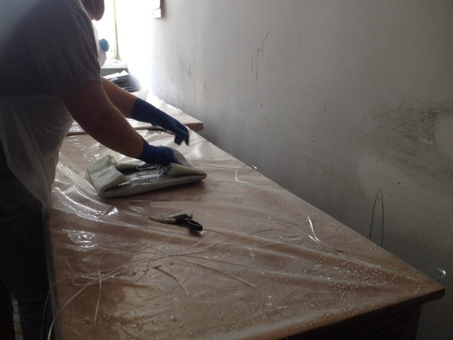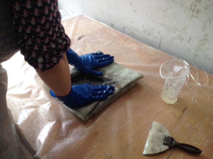 "Небайдужі волонтери знову взялися за добре діло - обробляють бронепластини скловолокном, яке виконує протиосколкову функцію", - йдеться в повідомленні самооборонівців.