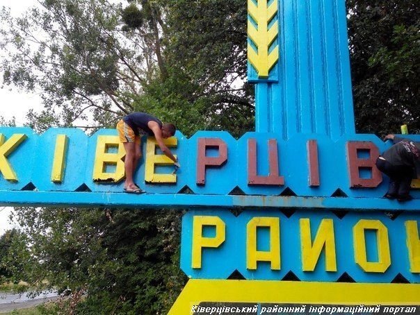 В'їзний знак "Ківерцівський район", що знаходиться у Луцькому напрямку, розфарбували у національні кольори.