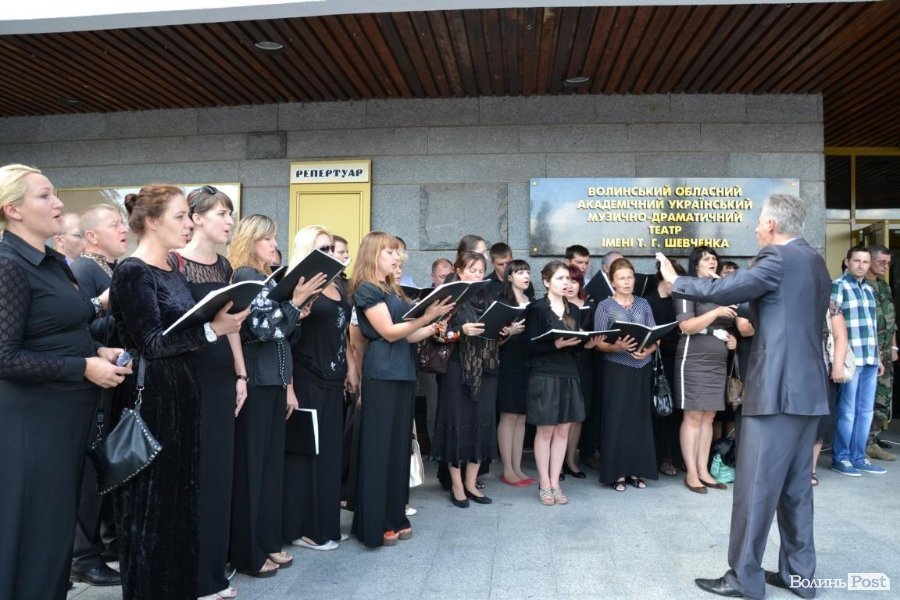 Коли труну несли до катафалка, лучани скандували "Герої не вмирають!", "Слава Україні". Також лунала пісня "Плине кача по Тисині", що вже стала гімном загиблим за волю України.