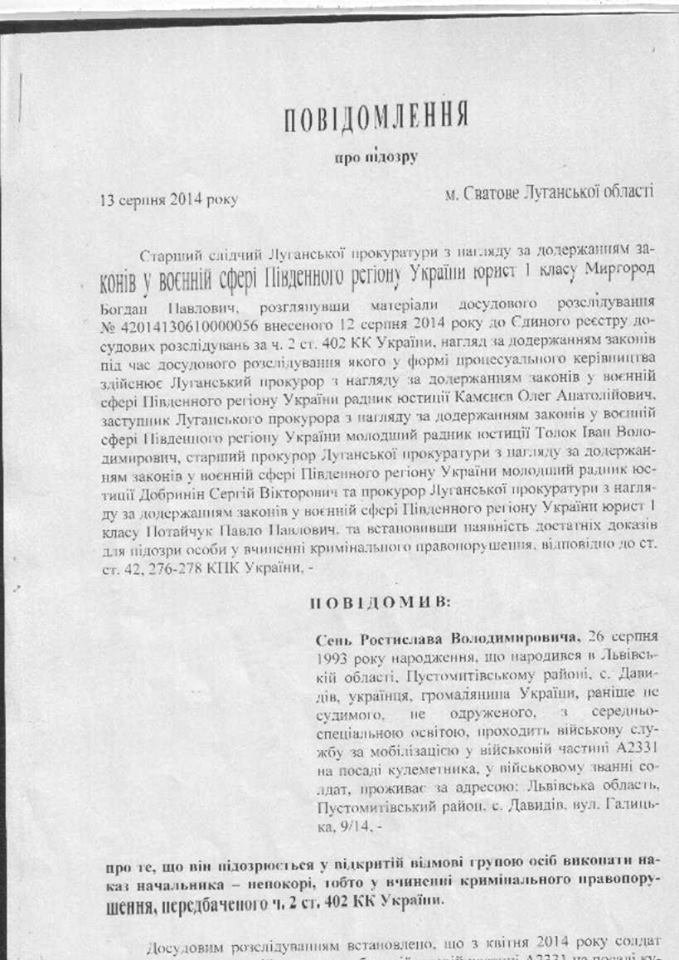 Мовляв, в підозрі не зазначено, чому виконувач обов'язків командир 128-ої бригади керує бійцями 51-ої, до лав якої входять затримані волиняни.