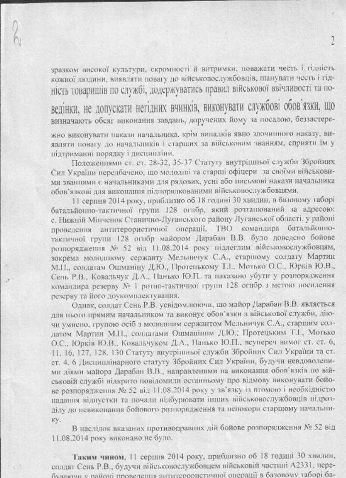 "Посилання прокурора на Статут внутрішньої служби та Дисциплінарний Статут ЗСУ теж є сумнівними, оскільки в підозрі не наведено доказів, що хлопці призвані по мобілізації та є військовослужбовцями (наказ, військовий квиток, прийняття присяги) та й не всі статті, як то кажуть "по дєлу", названі", - пише Нагорний.