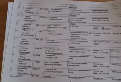Водночас у соцмережах та, для прикладу, видання Обозреватель публікує списки нібито терористів, які вдалося знайти в Луганській клінічній лікарні.