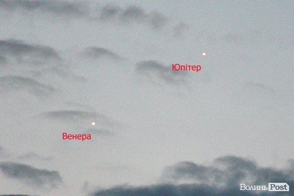 У небі над Луцьком можна було спостерігати з’єднання Венери та Юпітера – коли вони опинялися на небі поруч.