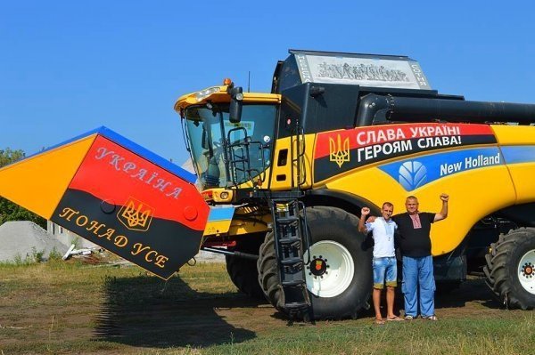 "Голландський комбайн набув національних рис - жатка та боковина зернозбиральної техники має червоно-чорні бандерівські кольори та написи «Україна понад усе!», «Слава Україні – Героям Слава!». Вгорі ж техніку прикрашає картина з зображенням Небесної сотні, авторства Юрія Журавля", - пишуть в соцмережі.