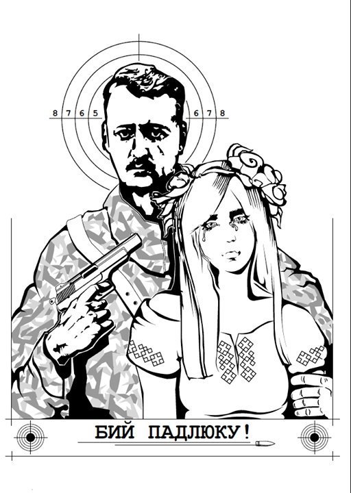 Навчальні мішені для тренувань зі стрільби, де зображений терорист Гіркін (Стрєлков) та українська дівчинка-заручниця, передадуть на Донбас, де нині триває війна, активісти ініціативної групи «Бий падлюку».