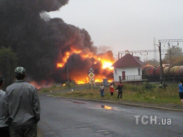 11 цистерн із нафтопродуктами загорілися, повідомили в обласному управлінні Держслужби з надзвичайних ситуацій.