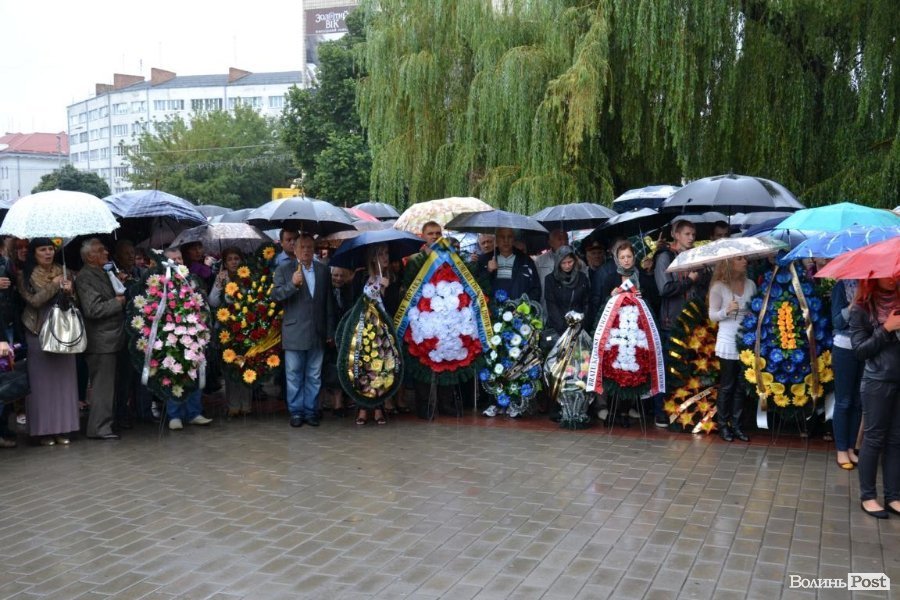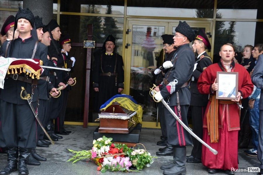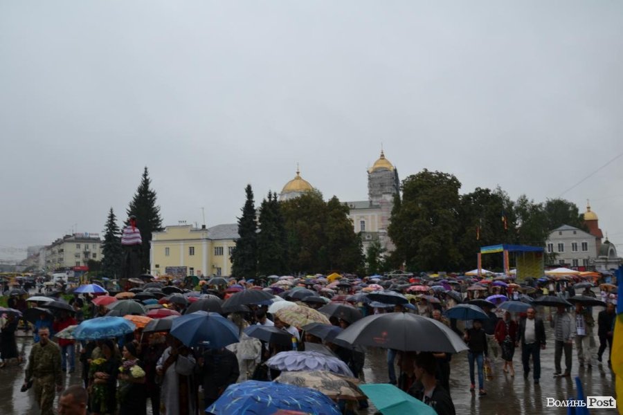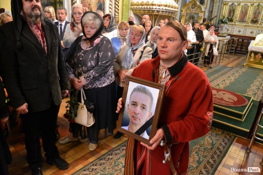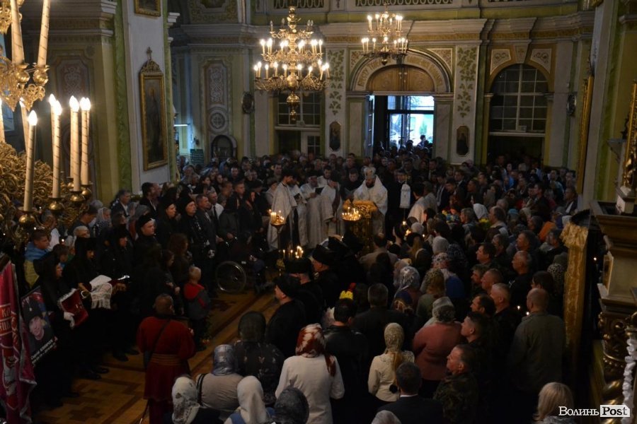 Відспівування бійця відбулося у Свято-Троїцькому соборі. Під час поминальної промови митрополит Волинської єпархії УПЦ КП Михаїл відзначив символізм такого "дощового" Дня Незалежності.