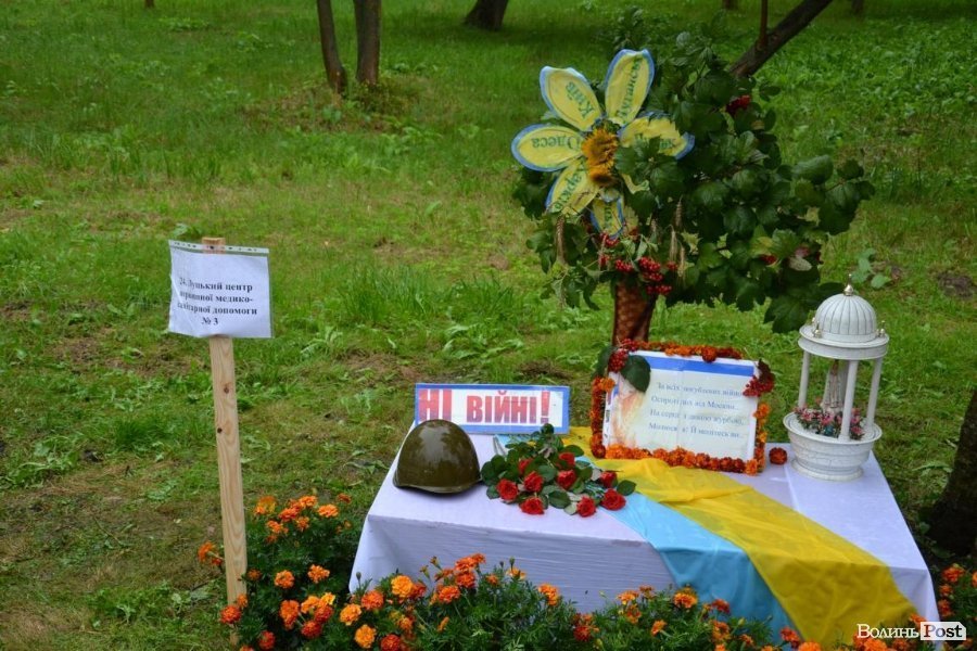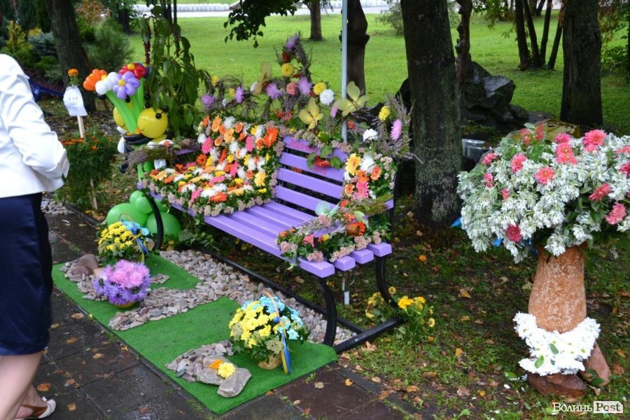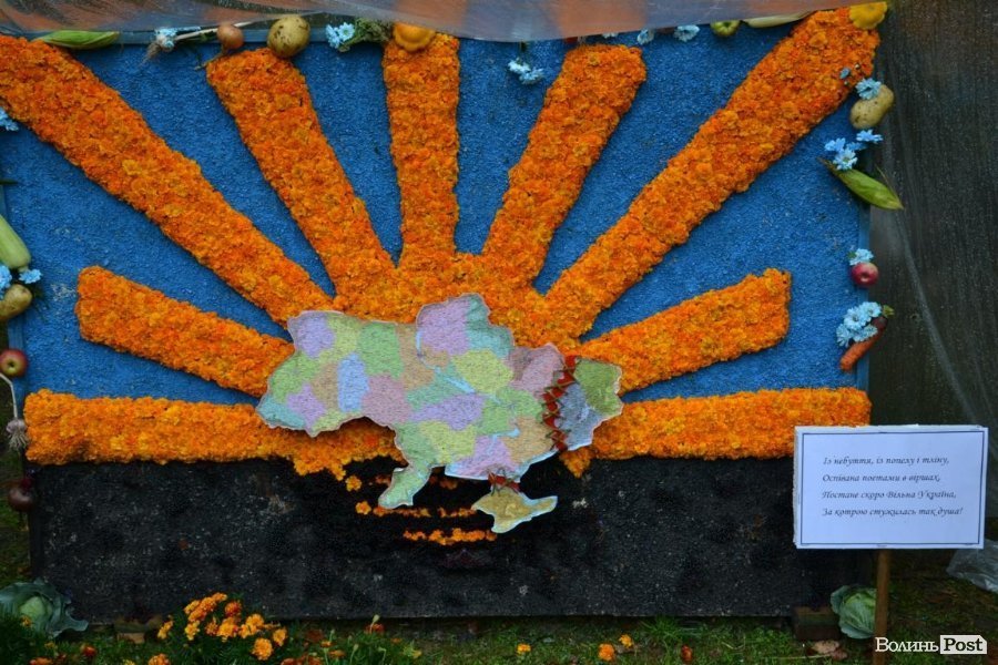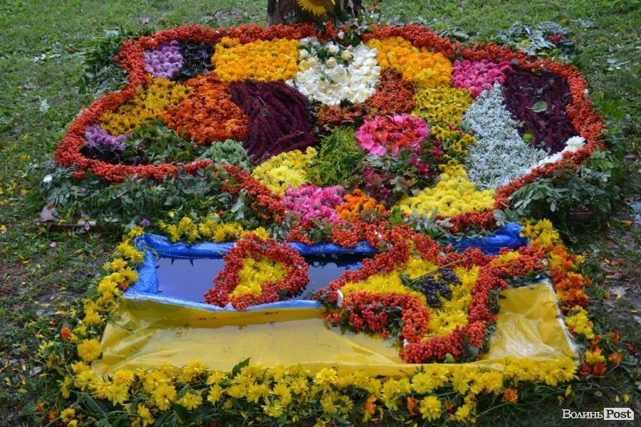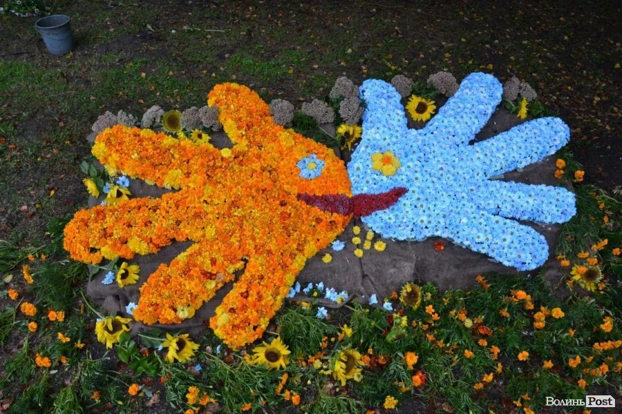 У Центральному парку Луцька розгорнули виставку композицій із квітів на патріотичну тематику.