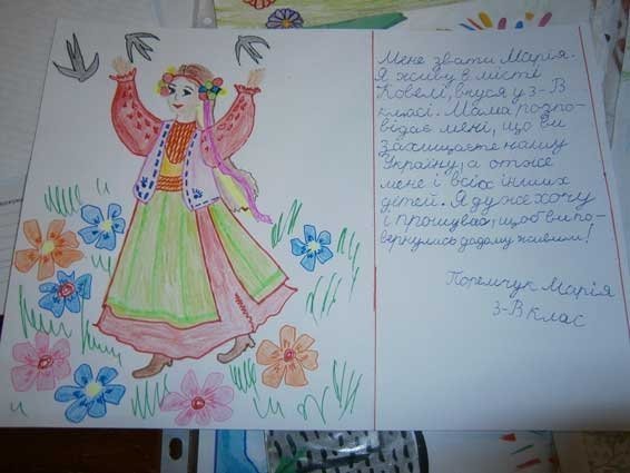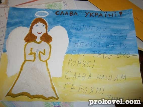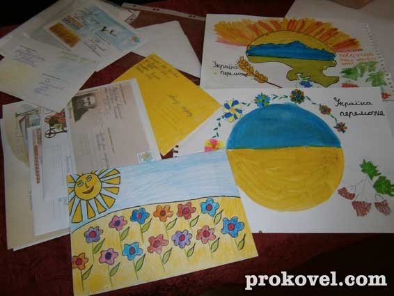Є тут і колективні роботи, зокрема, вихованців школи №10, і добірка малюнків дитячого садочка №11, і особистий подарунок у вигляді сердечка учениці ЗОШ №6 Даринки Миронюк, і лист із авторським віршем від 75-річної пенсіонерки, ветерана праці, дитини війни Олександри Балюк.