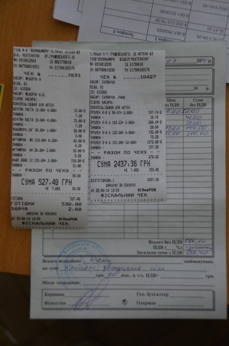 Також, сьогодні, 25 серпня, ми закупили шовний матеріал на суму 2 тисяч 437 гривень, а також антисептики та стоматологічні матеріали на суму 527 гривень для медичної частини 51-ї механізованої бригади, а конкретно капітану медичної роти Юрію Гульчуку.