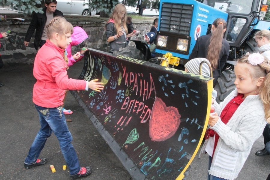 Святковості комунальній техніці додали також калина, мальви та волошки, які діти також вважають за символи нашого народу. Завершилося оригінальне відзначення 23-ї річниці Незалежності України фотографуванням біля патріотично розмальованої техніки. А всі, хто долучився до патріотичного тюнінгування, отримали солодощі.