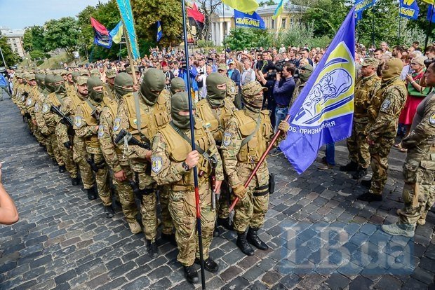 У вівторок близько 100 бійців батальйон "Січ" склали присягу на Інститутській вулиці.