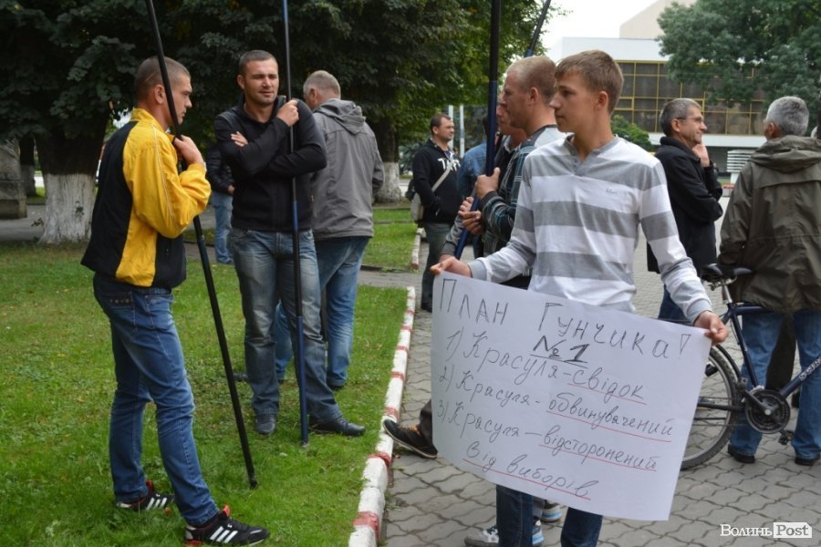 У Луцьку пікетували міліцію із закликом не робити з активіста, голови Волинської обласної громадської організації «Волинські патріоти» Володимира Красулі, який був свідком «яєчного замаху» на губернатора Волині Володимира Гунчика, обвинуваченого.