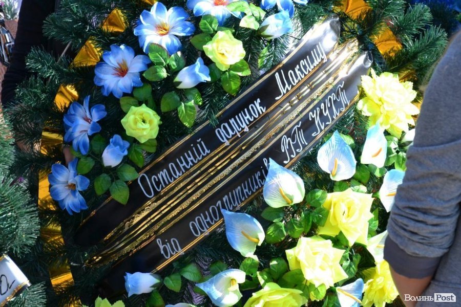Під час громадської панахиди останнє слово за загиблим сказали бойовий товариш Максима Роман Силвестр, директор школи №25 Віктор Цейко та одногрупник бійця із Волинського технікумі Національного університету харчових технологій.