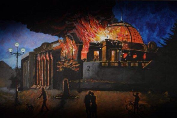 Картину з палаючою Верховною Радою продали за 121 тисячу гривень. ФОТО
