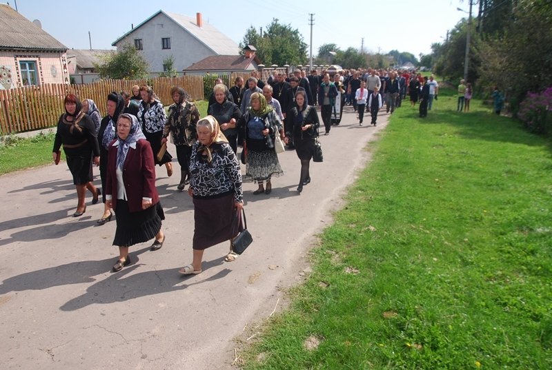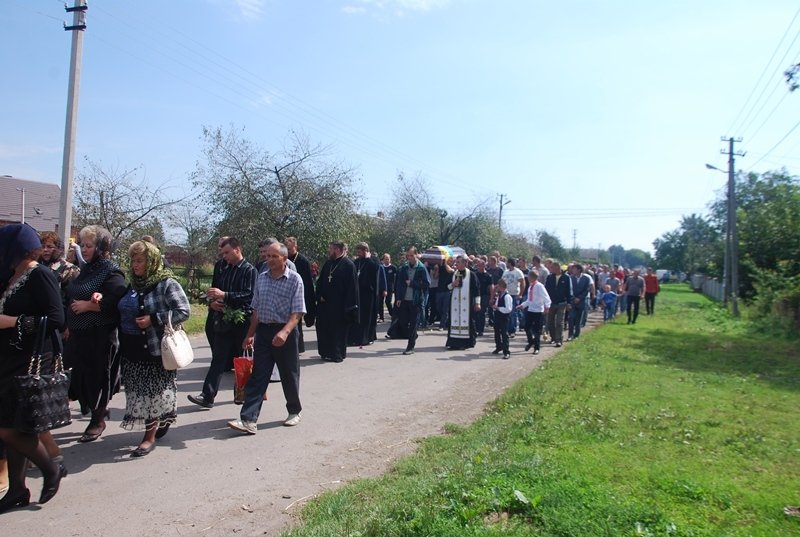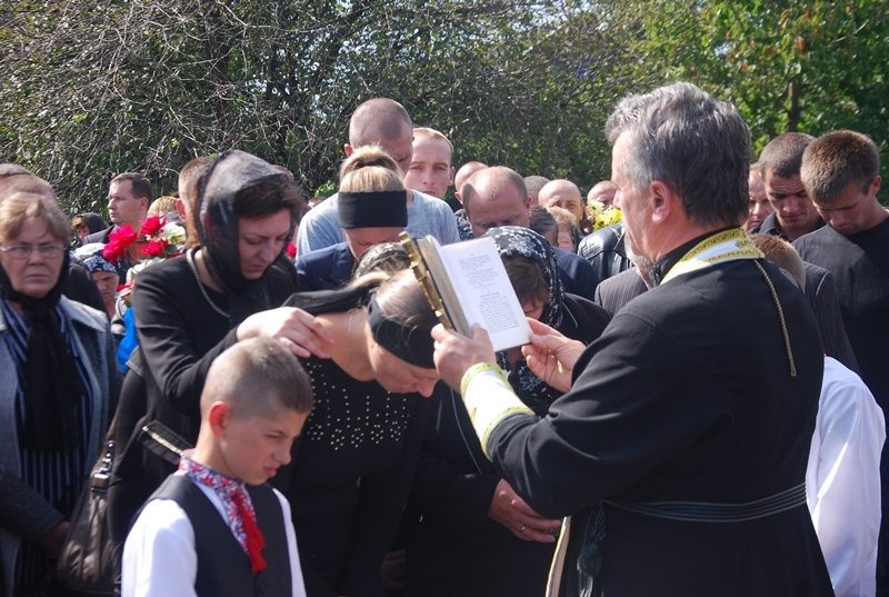 Після відспівування у храмі священики, рідні та односельчани загиблого українського воїна хресним ходом пройшли до цвинтаря, де поховали бійця.