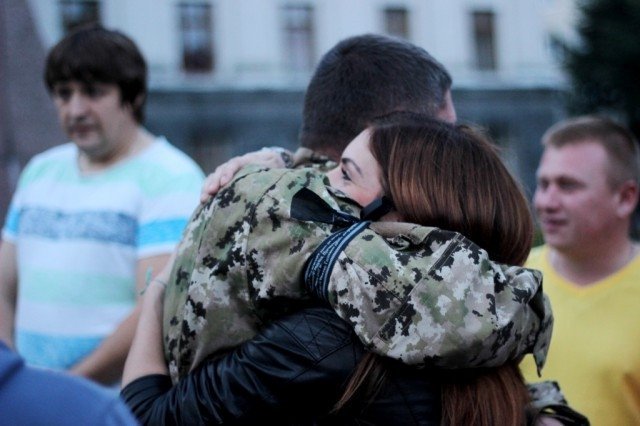 Після короткого прощання з добровольцями рідними та близькими, авто з бійцями вирушили на Схід.