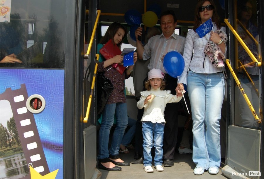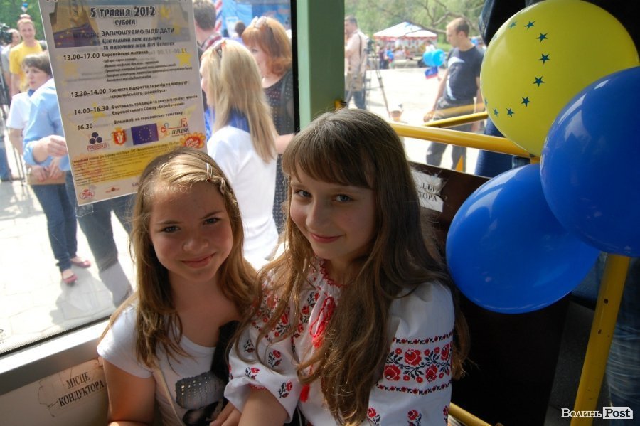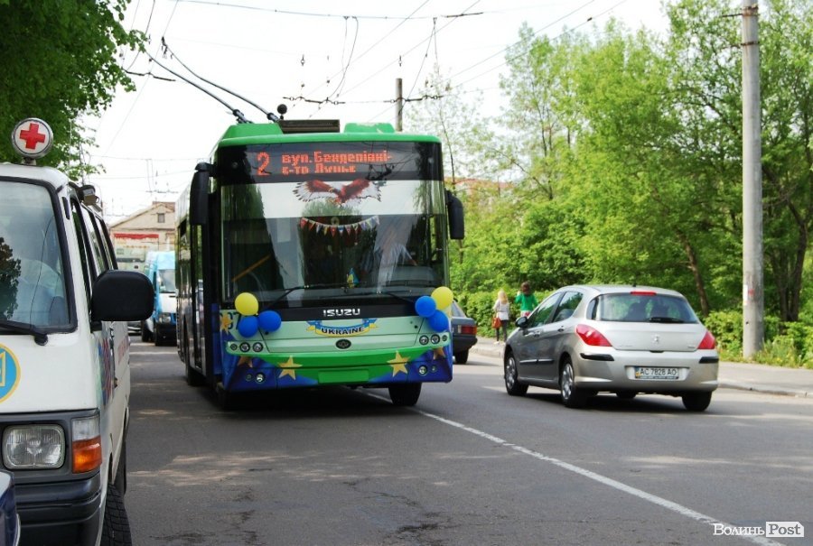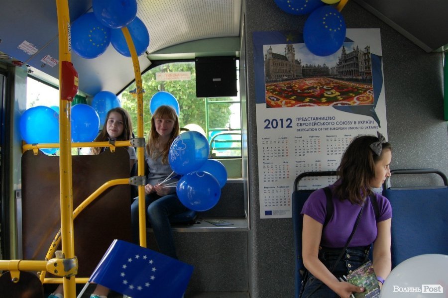 Саме такий тролейбус вийшов на лінію 5 травня, коли у Луцьку відзначали День Європи.