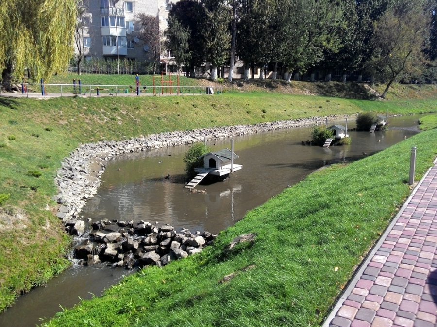 Під’їхали маршруткою і сходами спускаємось до кафе і річки. Сходи для нас теж атракція. Поруч із входом декілька дитячих ігрових автоматів. Як пройти повз? Але головне - на цьому відрізку маршруту підійти до річки і погодувати заздалегідь купленим хлібом качок. Діти і «зелені» в захваті. Мені завжди згадується тут епізод з «Сімнадцяти миттєвостей весни». Пам’ятаєте, як в Берні професор Плейшнер гуляв парком. Кругом війна, а там спокій. (Хіба не про нас?)