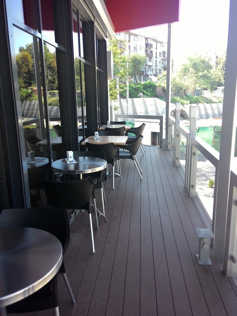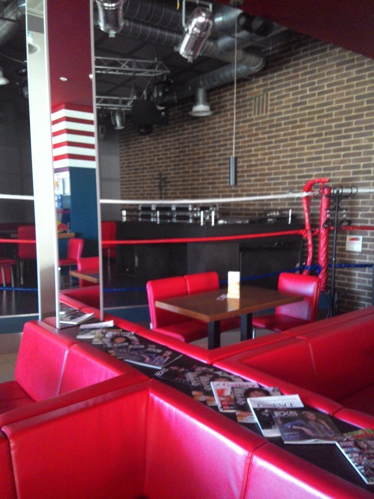 Простора зала на 80 місць, барна стійка, місце для ді-джеїв, ніби імпровізований рінг, червоні дивани, дві тераси. Сучасно, стильно, ніби кафе в одному з районів Нью-Йорка.