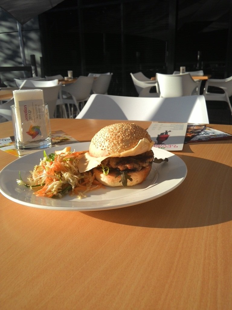 Тим часом нам принесли замовлення. Мій бургер подавався з картоплею фрі і салатом. Булка свіженька, котлета з яловичо-свинного фаршу смачна. (Не дарма американці їдять бургери. Щось знають ті янкі.)