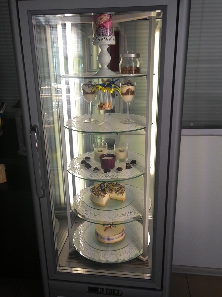 Зауважив, що в куточку є дитяче крісельце (бо ж колись нас буде ж більше), підійшов до кондитерської вітрини-холодильника, підгледів, як бармен наливає пиво, і зачепив словом кухаря. Це був су-шеф Сергій. Він побачив моє зацікавлення кондитеркою і порекомендував: «Спробуйте наші десерти. Завжди з свіжих ягід та італійського сиру». Чемно подякував. «Ми не дуже полюбляємо солодке. Спробуємо при нагоді, ми фанати вашого печива до чаю». - «Так, це печиво, як пекла бабуся» - сказав Сергій. (Як влучно. Саме тому ми його дозволяємо доці. Воно по якості «як в бабусі».)