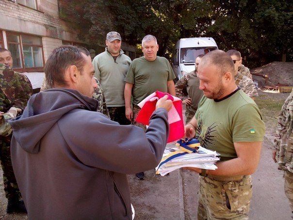 Автомайданівці подарували Дмитру прапор Волині - як символ єдності і неподільності українських земель та свідчення підтримки бійців патріотами Волині.