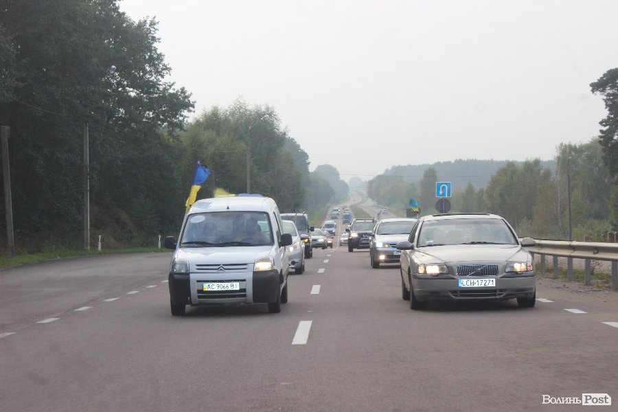 Колона рухалась з Києва до Луцька у супроводі ДАІ. До неї також долучились представники "Автомайдан Луцьк", "Автомайдан Волинь", що разом склало близько 50 автомобілів.