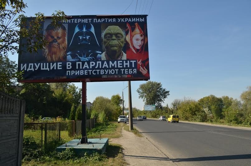 Цікаво, що на вулиці Карпенка Карого розташований білборд із зображенням Дарта Вейдера, який схожий на героя кіноепопеї «Зоряні війни». Також в Луцьку є білборди з Дартом Вейдером з написом «Силовик. Політик. Батько», «Идущие в парламент приветствуют тебя».