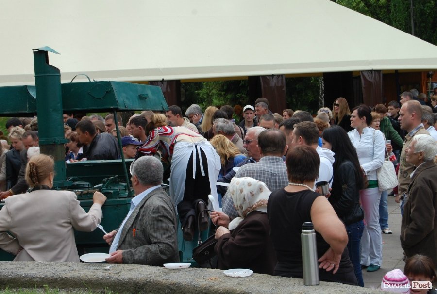 При вході у парк культури та відпочинку усім охочим безкоштовно роздавали гречану кашу, чай та квас, а бажаючих було чимало – у центральний парк прийшли сотні лучан.