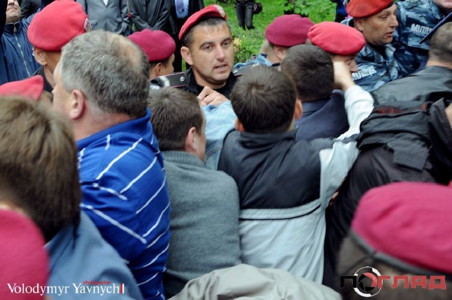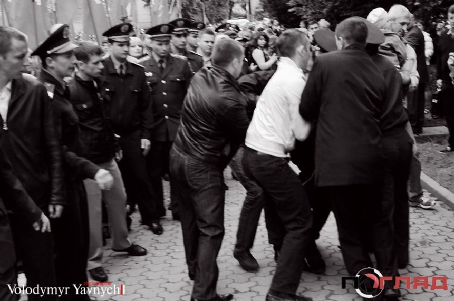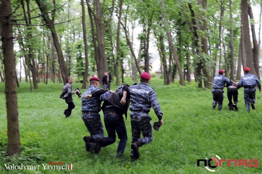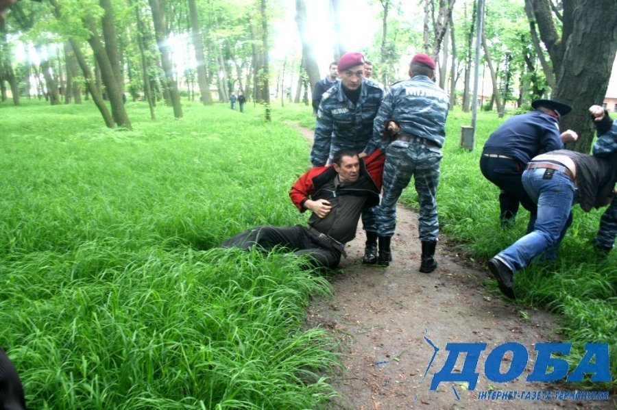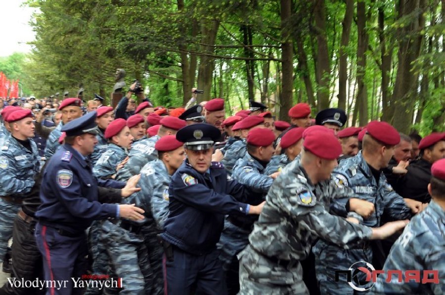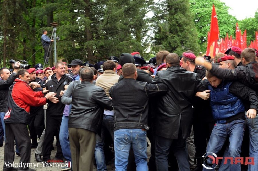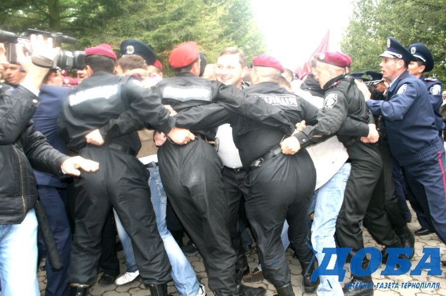 Водночас, як повідомляє тернопільське видання "Доба", правоохоронці під час сутички зі "свободівцями" та іншими націоналістами, які заважали колоні комуністів рухатися до Монументу слави, змушені були кидати їх на землю та утримувати силою.