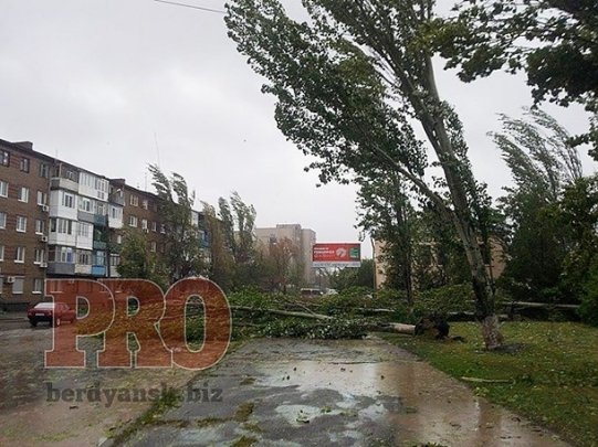 У Бердянську Запорізької області у ніч на 22 вересня розігрався сильний шторм. Через ураганний вітер, що досягав 30 м/с, із поривами до 33 м/с, повалено сотні дерев, у багатьох мікрорайонах обірвані лінії електропередач.