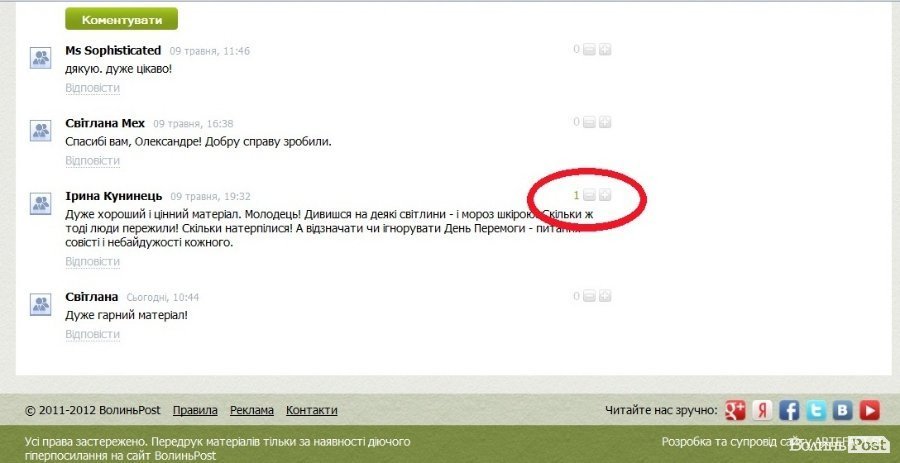 Для цього під кожною публікацією – новиною, статтею, повідомленнях у рубриках «Стіна» і «Колонка автора» - розміщена панель рейтингування.