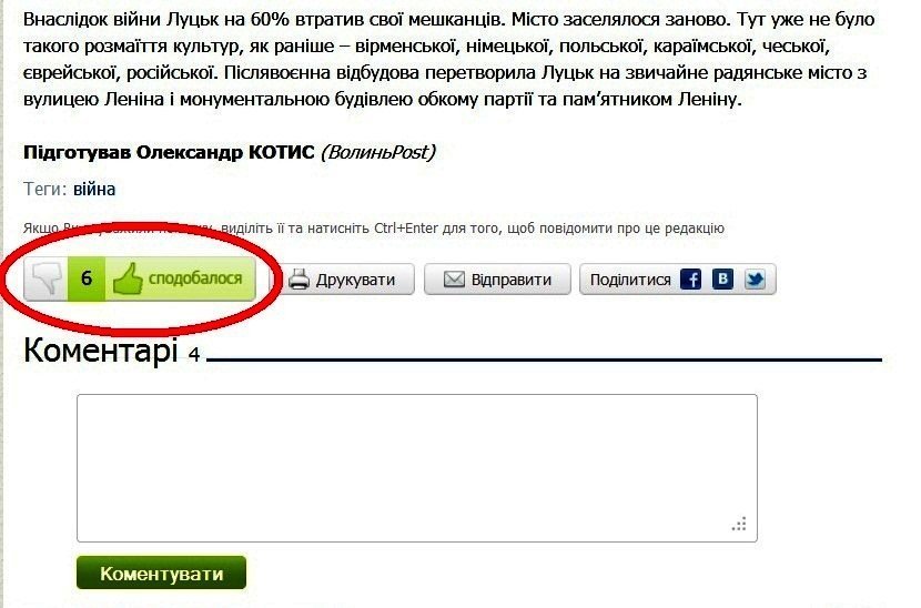 Якщо читачеві сподобається публікація – він може натиснути кнопку «сподобалося». Якщо ні – кнопку негативної оцінки (піктограму руки з опущеним вниз великим пальцем).