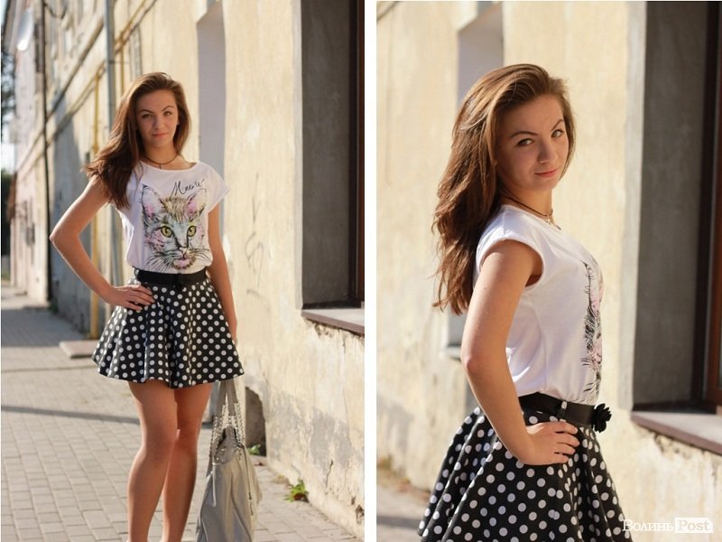 За модою дівчина слідкує, але все ж обирає той одяг, який їй пасує. Каже, подобається класичний стиль: спідниці, блузи, майки класичного крою.