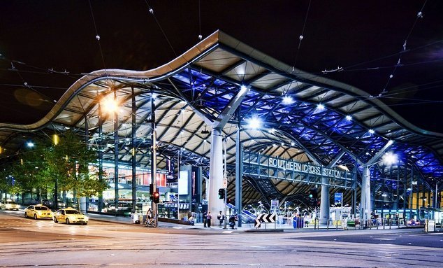 Цей вокзал став називатися Саутерн-Кросс після складної модернізації в 2005 році, раніше носив назву Спенсер Стріт. Його хвилястий дах простягається на цілий квартал і нагадує плаваючу в повітрі ковдру, встановлену на Y-подібних колонах.