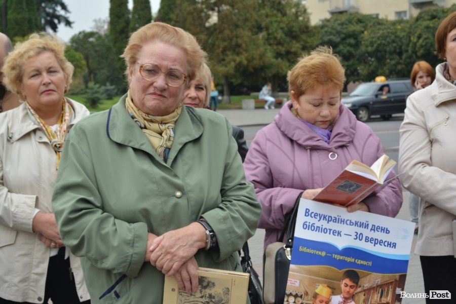 Українська бібліотечна асоціація провела акцію «Бібліотека – територія єдності» 30 вересня біля пам’ятника Тарасу Шевченку на проспекті Волі.