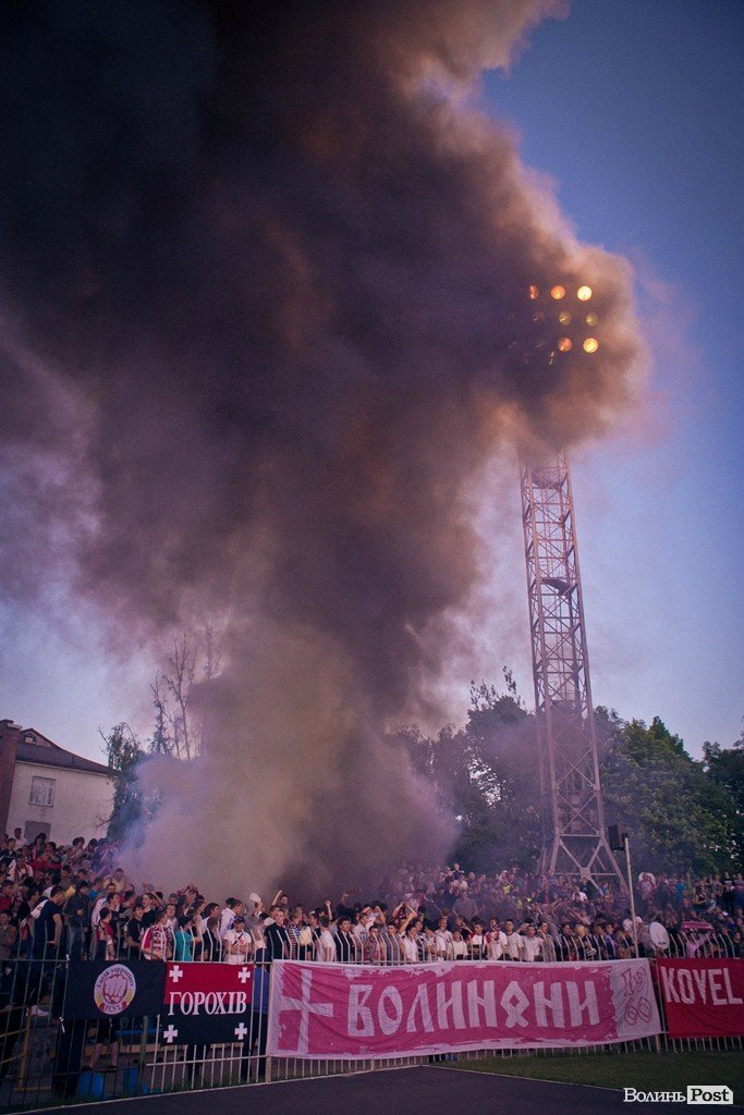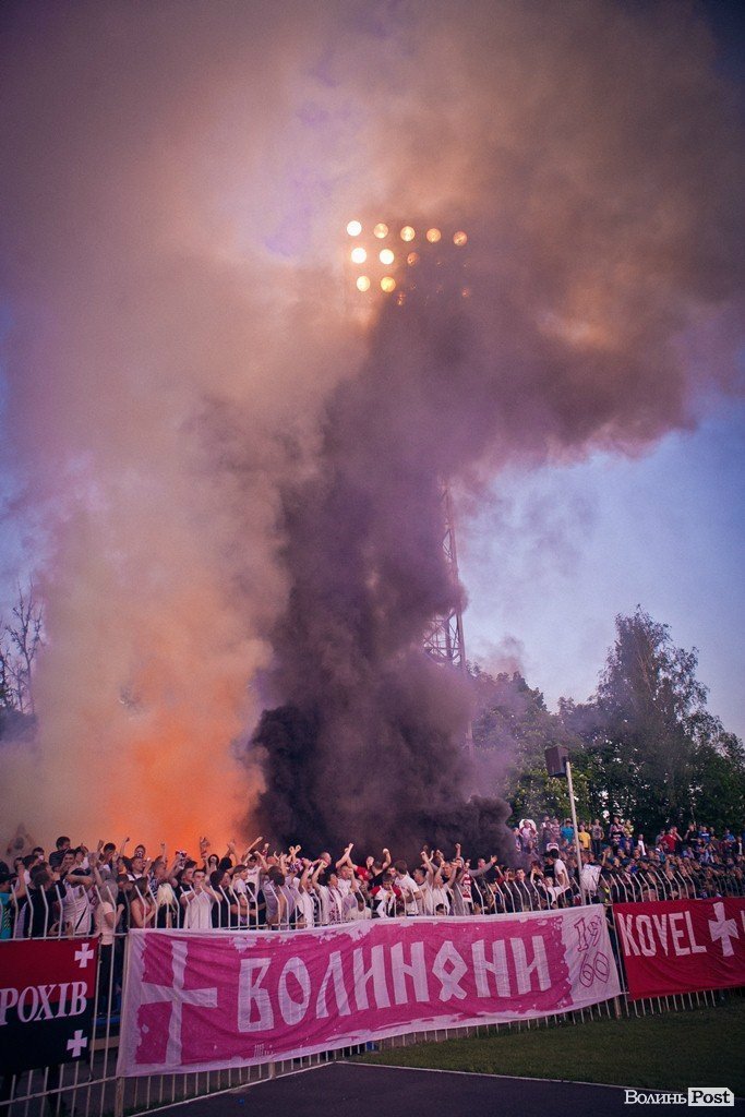 Уболівальники футбольної команди «Волинь» під час останнього домашнього матчу не витримали та запалили найбільшу у сезоні кількість піротехніки й вивісили нацистську символіку.